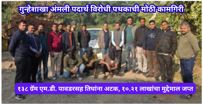“ऑपरेशन थंडर – आइए मिलकर नशामुक्त समाज बनाएं” अभियान के अंतर्गत नागपुर शहर अपराध शाखा की नशीले पदार्थ विरोधी टीम ने बड़ी सफलता हासिल की है।