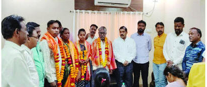 स्थानिक विश्रांतीगृहात आयोजित कार्यक्रमात मातंग समाजाच्या वतीने ज्योती पाटोळे व तिच्या आई-वडिलांचा पेढे भरवून सत्कार करण्यात आला.