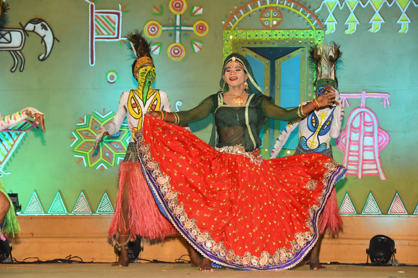 शाम 6:30 बजे से शुरू हुए सांस्कृतिक कार्यक्रमों में देश के विभिन्न राज्यों के कलाकारों ने अपनी मनमोहक प्रस्तुतियों से दर्शकों का दिल जीत लिया। मणिपुर का लाई हरोबा नृत्य, आंध्र प्रदेश का गर्गलु, उत्तर प्रदेश का डेढ़िया और झुमर, मध्य प्रदेश का गुदुमबाजा, राजस्थान का सेहरिया स्वांग, गुजरात का तलवार रास और बेड़ारास तथा गोवा का घोड़े मोडनी नृत्य प्रमुख आकर्षण रहे। कार्यक्रम का संचालन श्रीमती श्वेता शेलगांवकर ने किया।