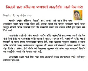 चिखली शहर कॉग्रेसच्या अध्यक्षपदी अतहरोद्यीन काझी तिसऱ्यांदा