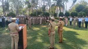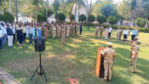 तसेच संविधान दिनानिमित्त भारतीय संविधानाच्या उद्देशपत्रिकेचे वाचन करण्यात आले. सदर कार्यक्रमाच्या वेळी पोलीस अधीक्षक पी.आर.पाटील, अपर पोलीस अधीक्षक निलेश तांबे, विभागाचे उप विभागीय पोलीस अधिकारी सचिन हिरे, स्थानिक गुन्हे शाखेचे पोलीस निरीक्षक किरणकुमार खेडकर, जिल्हा विशेष शाखेचे पोलीस निरीक्षक भरत जाधव, राखीव पोलीस निरीक्षक देवनाथसिंग राजपुत इत्यादी अधिकारी व पोलीस अंमलदार उपस्थित होते.