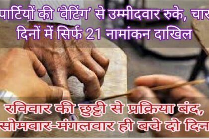 पार्टियों की ‘वेटिंग’ से उम्मीदवार रुके, चार दिनों में सिर्फ 21 नामांकन दाखिल : रविवार की छुट्टी से प्रक्रिया बंद, सोमवार-मंगलवार ही बचे दो दिन