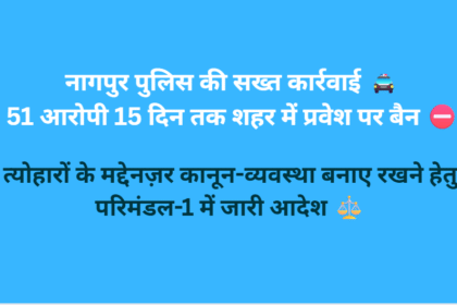 📰 नागपुर शहर में 51 आरोपियों पर कड़ी कार्रवाई 🚔, 15 दिन के लिए प्रवेशबंदी ⛔